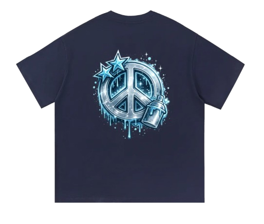 Spread good vibes with our Peace Sign T-Shirt. Featuring a vibrant, graffiti-inspired peace graphic with sparkling details and a spray can accent. It's a statement piece for comfort and street-ready style☮️.